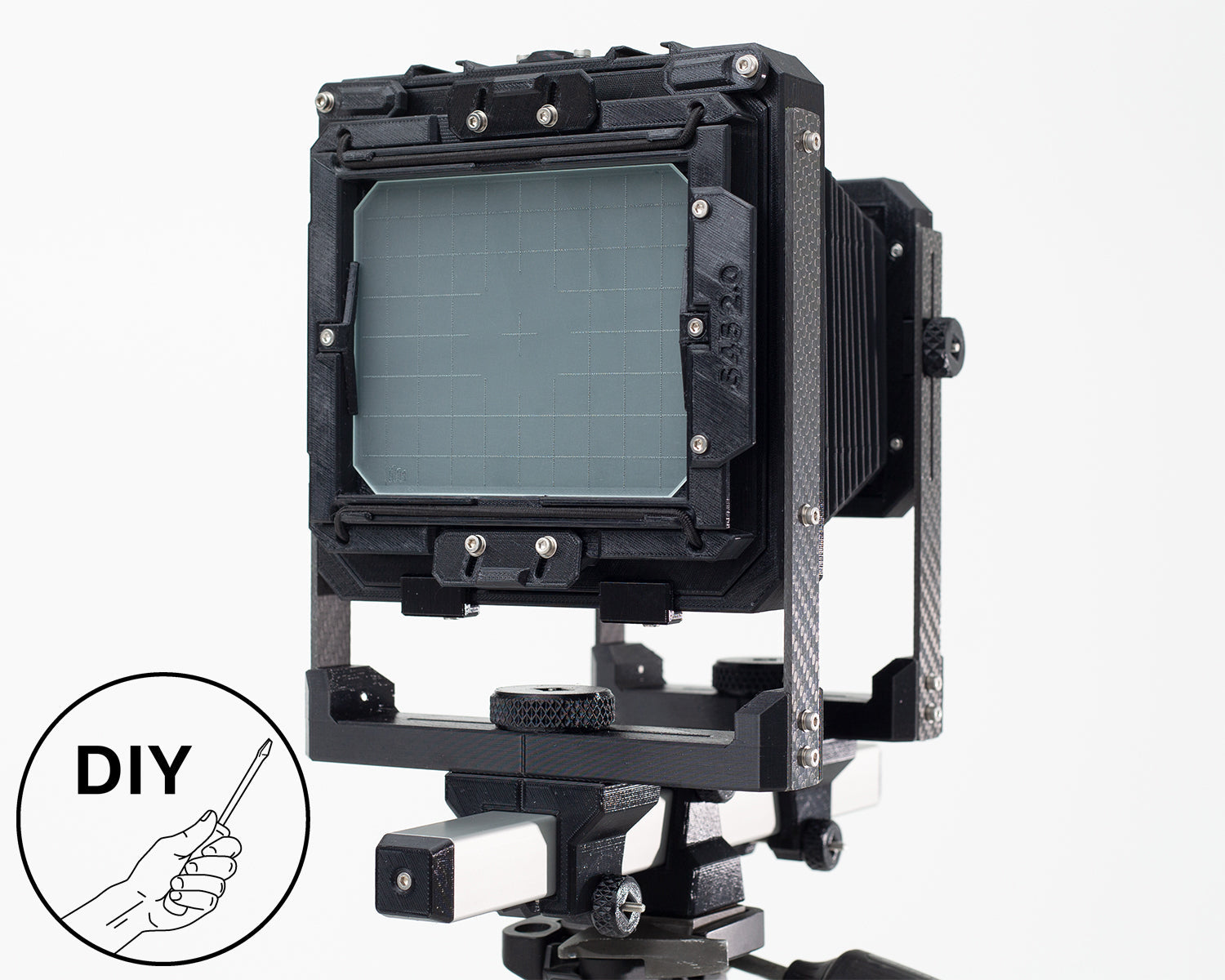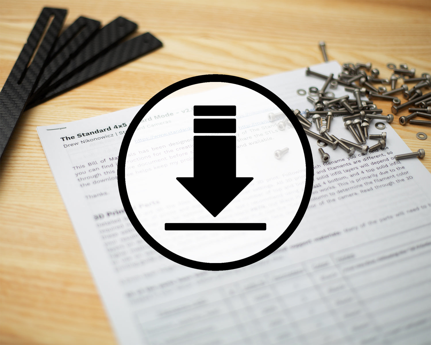 If you own a 3D printer, why not build your own Standard 4×5 from scratch? This downloadable pack includes all the .stl files, resources, and information needed to build The Standard 4×5 2.0. Building the 4×5 includes making a bellows, a rail and forks, ground glass, and more. The download is used alongside information found on the Manuals page. We affectionately call this process Hard Mode.
